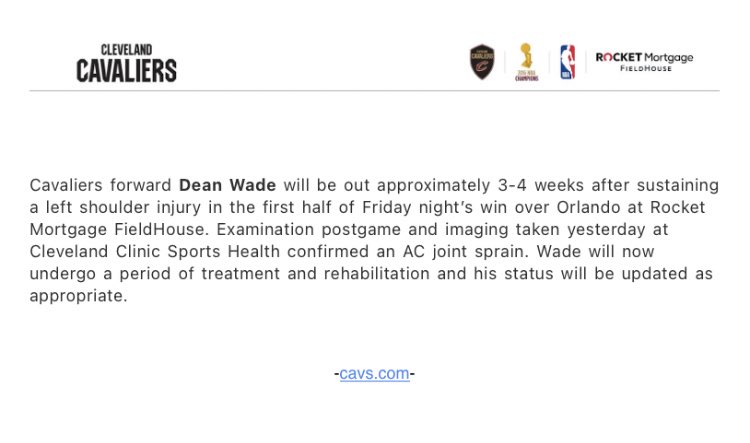 Spencer Davies On Twitter Cavs Say Dean Wade Will Be Out About 3 4 Weeks With An Ac Joint Sprain In His Left Shoulder Https T Co Zztt1jv6ya Twitter